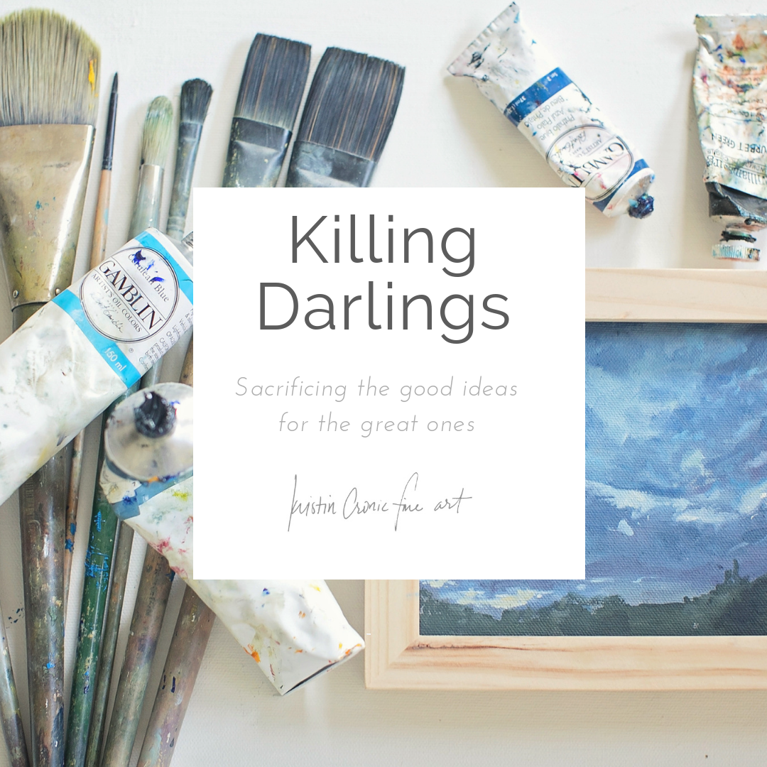 The art mentorship group I’m a member of is currently working on a challenge where we are instructed to “kill our darlings,” (based off a William Faulkner quote) to not be afraid to sacrifice our paintings for the sake of growth, and something better. (We we’re instructed to do three 20 minute paintings, with the intent to wipe out each one). I made a little video of my initial response: