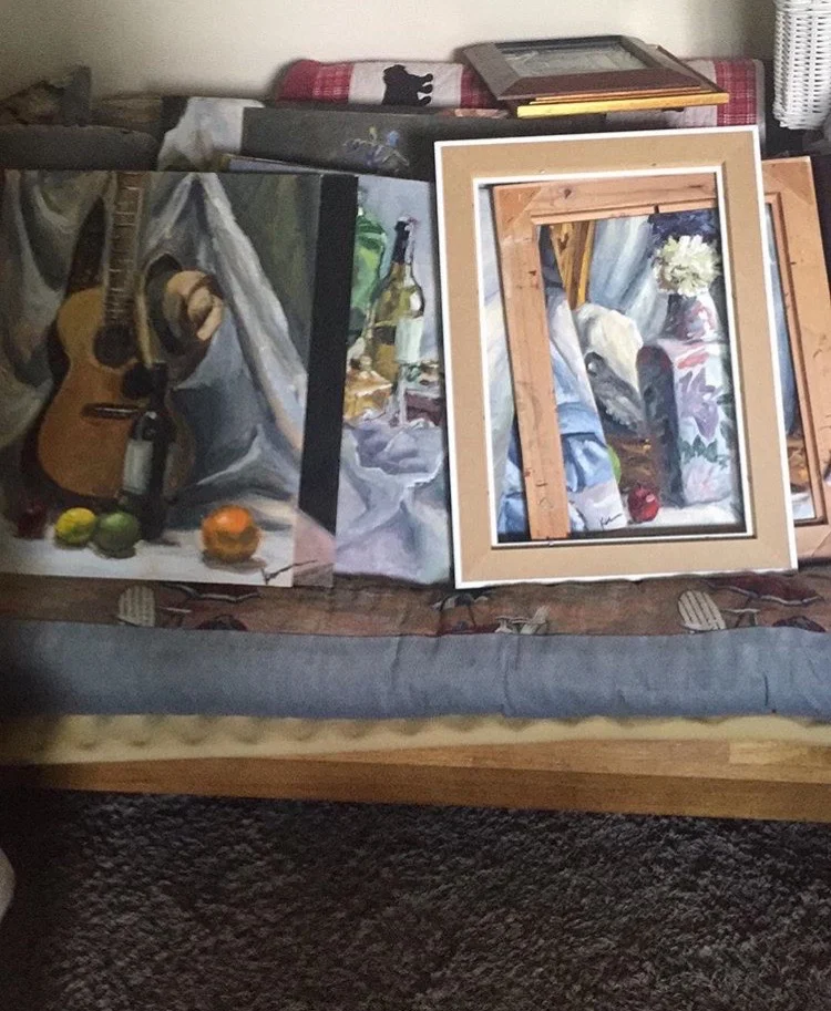 We had no idea what we would find when we got back in the house. I made a beeline for where I had stashed my paintings. They were DRY! By five inches!!! I didnt care about anything else at that point.