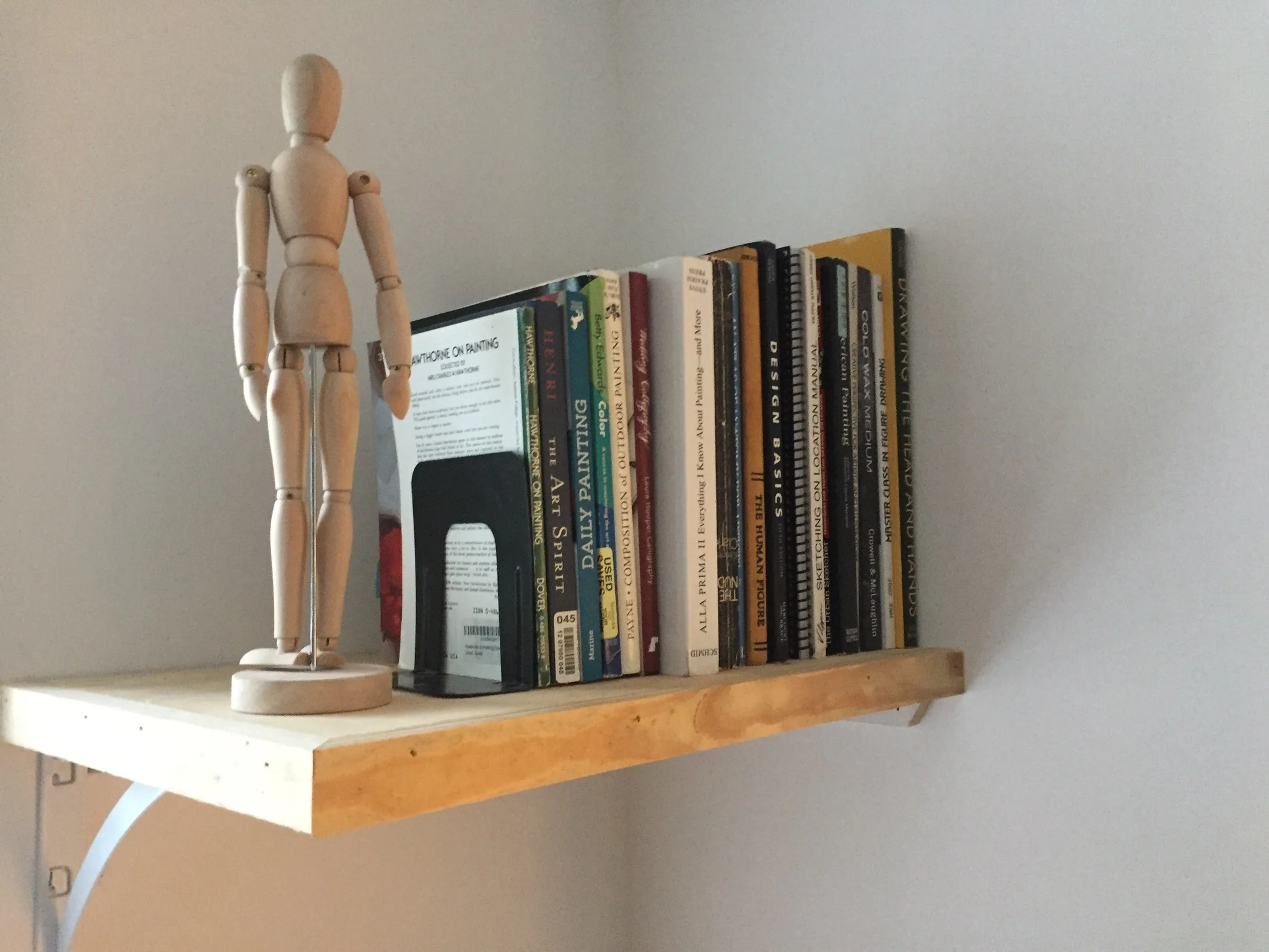 I follow so many inspirational artists on instagram, and Brynn Casey is one of them. While double tapping all her stunning seascapes, I noticed the incredibly simple yet brilliant hanging system she uses in many of her photos. I adapted it to fit my space, and basically it's a 2 by 4 wooden rail with screws sticking out every 6 inches or so. It's a lot cheaper than purchasing a real hanging system, and it's a huge upgrade from the 300 thumbtacks that were a total blast to pull out of the wall previously.