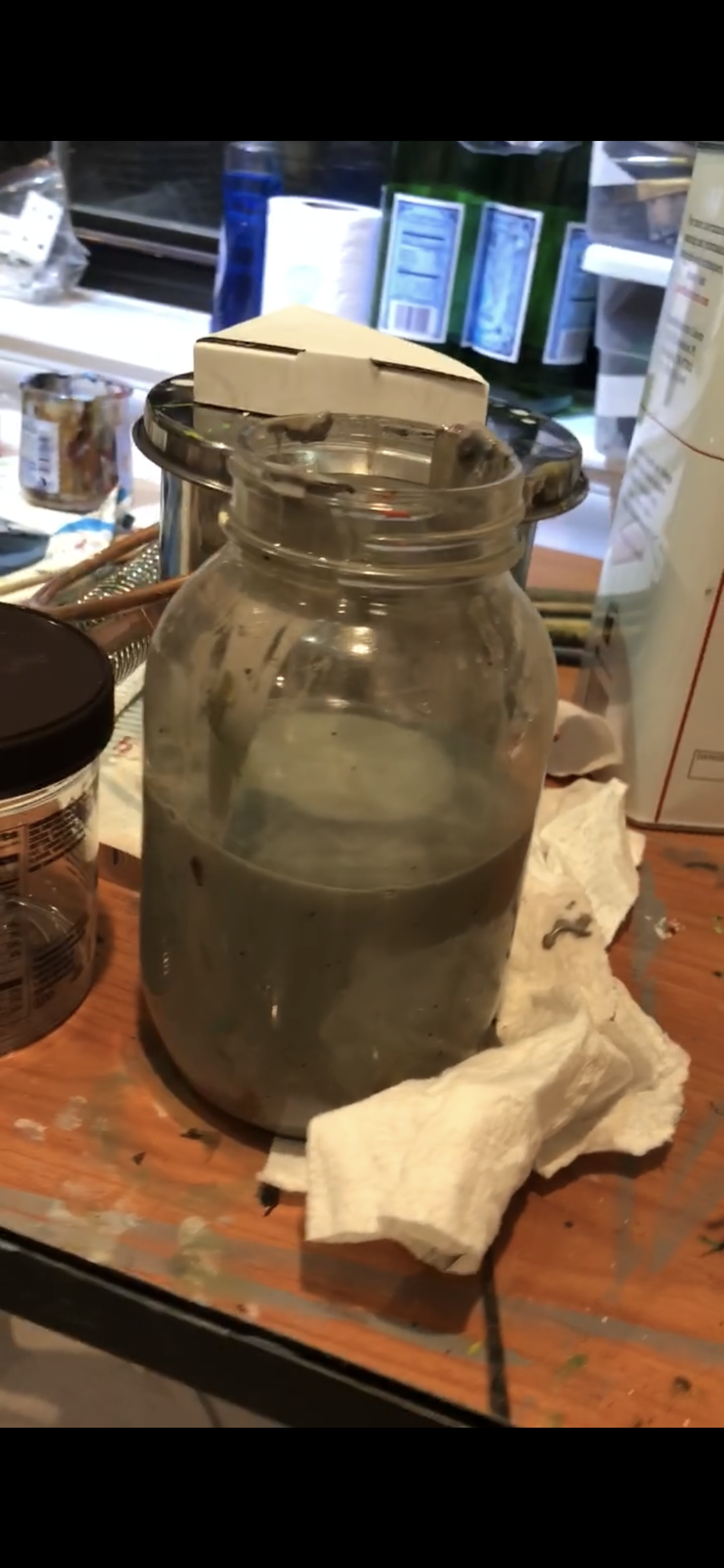 Just popping in here to share a little something cool. When my solvents start to stop cleaning my brushes, I know it’s time to clean it. I used to dread the process but not once I figured out a clean (and resourceful) way to do it. All you need is an old spaghetti sauce jar!