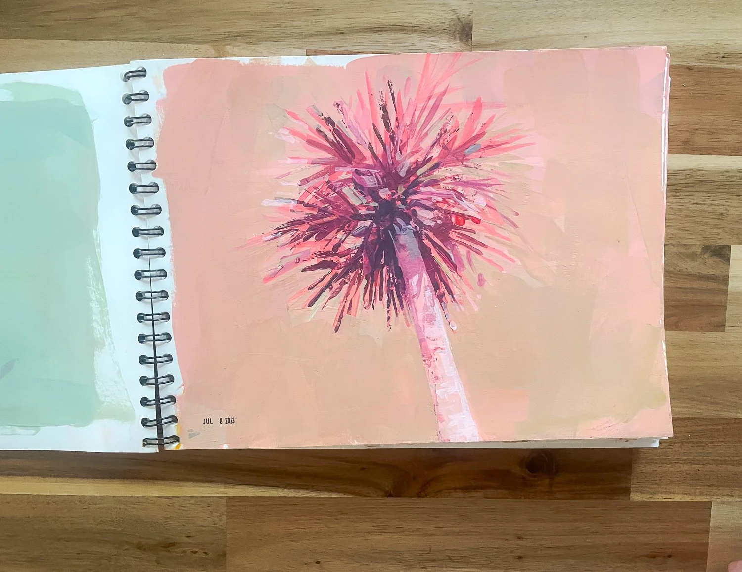 These babes caught my eye in a new way last week when I was walking. I had the urge to play with them as simple forms with wacky color. I’ve only done one so far in this manner, but have a ton of prepped swatches on blank pages to continue to explore. I could see this turning into a very fun (and colorful!) series!