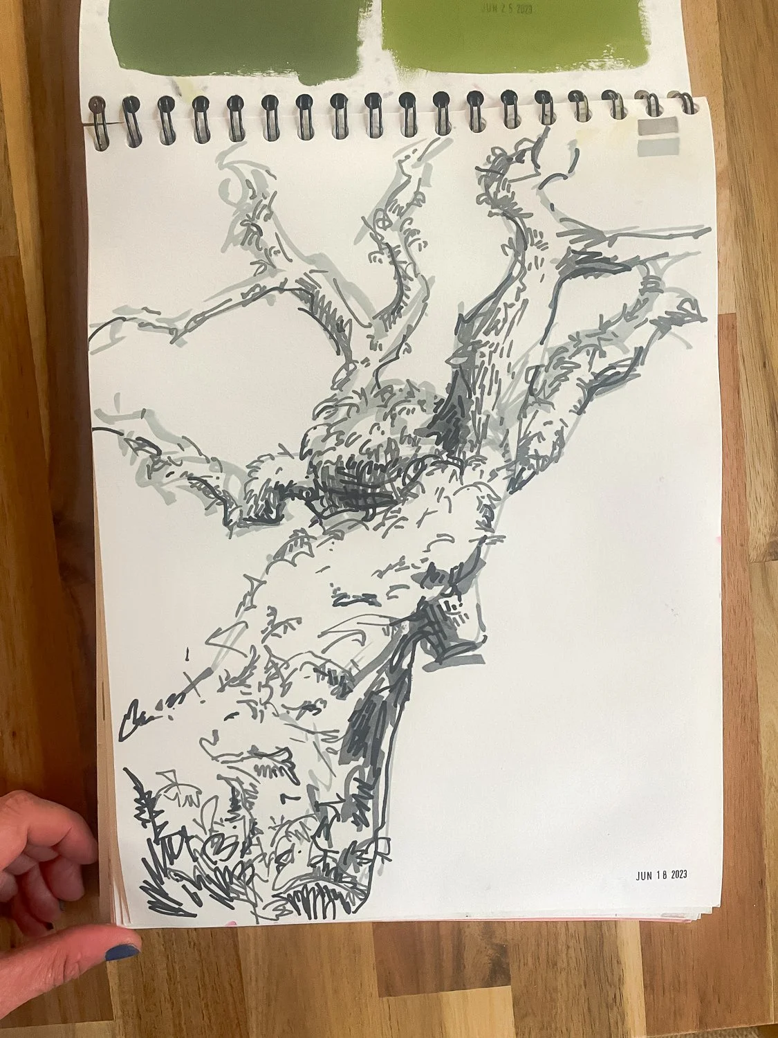 It’s the first thing I couldn’t wait to explore when we arrived, and I hope to return to these as large-scale paintings when I am back in a more forgiving studio space. These trees have shown up in my work again and again, often signifying ideas such as home, space, and shelter.