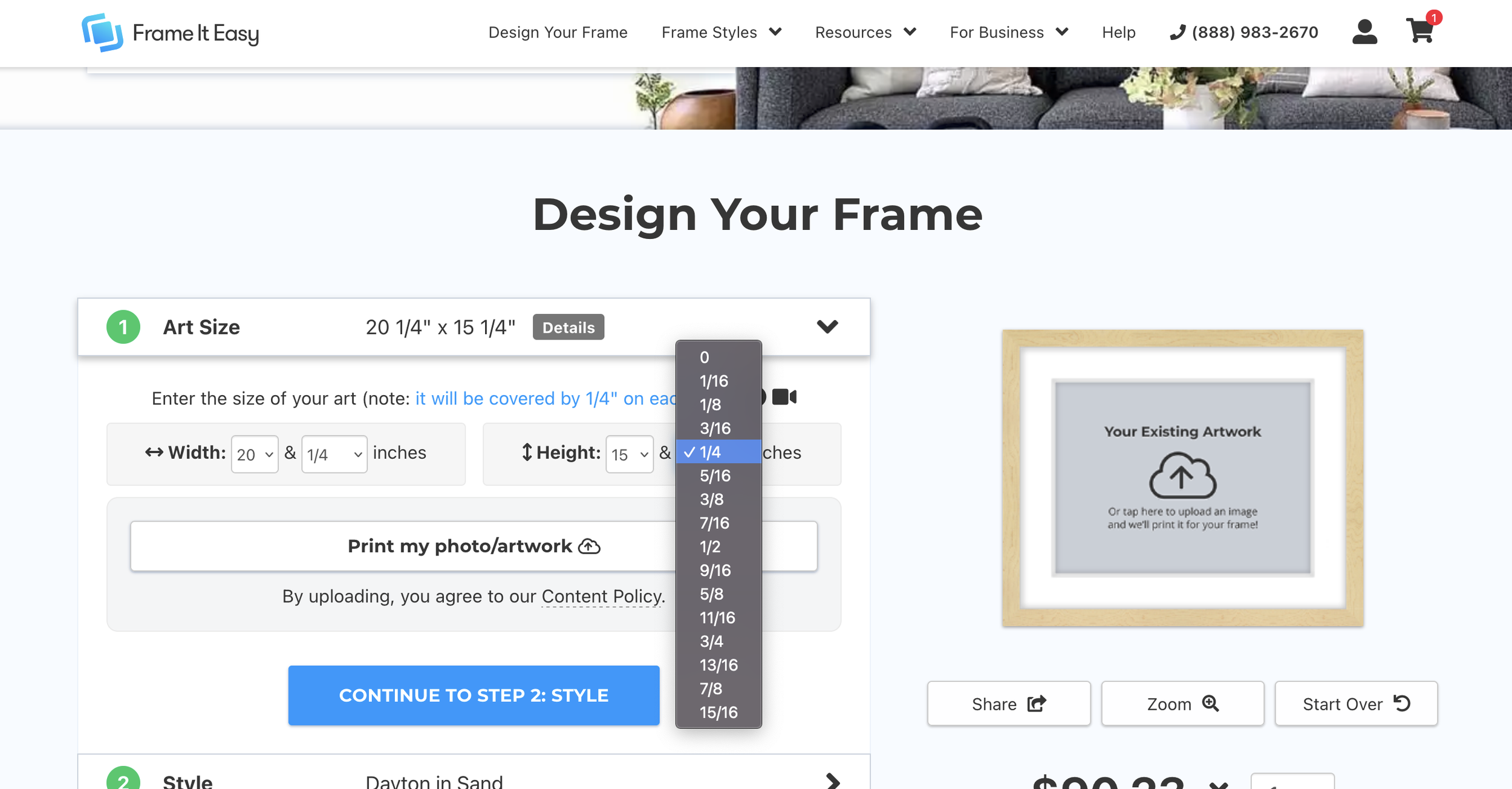 At the time of this writing, Frame it Easy isn’t offering frames for stretched canvas, so only keep reading if you are looking for the matted frame look. If you know you want that, select a print size or two down from what you want on your wall to make space for the mat and frame.