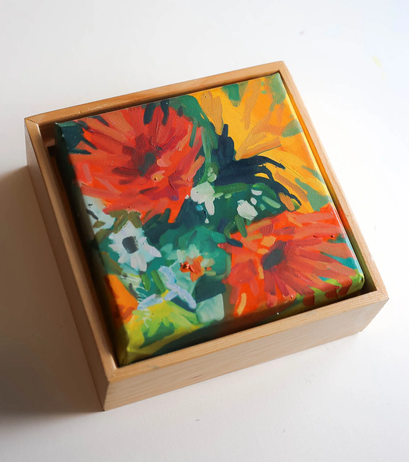 Coming January 13, 2022 the newest collection of oil paintings is here! “Happy Florals” consists of 16 framed paintings depicting vibrant and abstracted bouquets of flowers.
